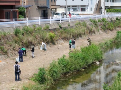設立後、6月のラブ・アースクリーンアップを前に、長尾校区にかかる樋井川の草刈り作業を行いました。地域や企業からご支援をいただき、かなりの範囲の草刈りができました。皆様に感謝申し上げます。