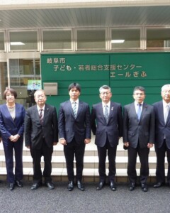 最終日は岐阜市にある「子ども・若者総合支援センター エール岐阜」を視察しました。この施設は、廃校となった小学校をリニューアルしており、乳幼児支援や児童虐待に関する支援、子どもの発達に関する総合的な支援を行っています。岐阜県中央子ども相談センター(児童相談所)の職員と岐阜県警が同じ部屋で勤務し、さらにエール岐阜の相談担当職員と岐阜市教育委員会の虐待担当デスクが常設され、密に連携をとっています。他県ではあまり見られないこの編成は非常に学びの多いものでした。