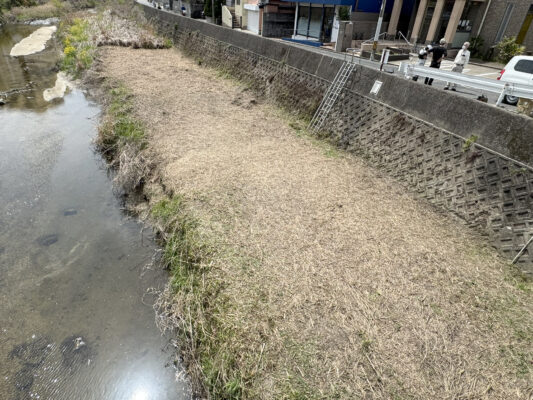 午前中は、私の河川愛護団体である「38リバークリーンクラブ」として、樋井川の草刈りを行いました。30人近くの地域の方々にご参加いただき、皆さんの手で樋井川をきれいにすることができました。