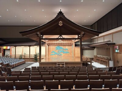 大濠公園内の能楽堂にて県営西公園の概要説明を受け、併せて能楽堂の施設内も視察させていただきました。能楽堂は当時15億円をかけて整備されたとのことで、伝統芸能である「能」や「狂言」を鑑賞するには最適な設計が施されており、日本文化の魅力を肌で感じられる貴重な空間でした。