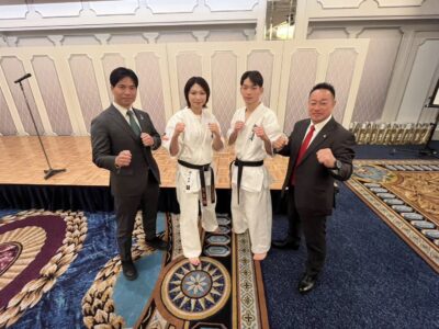 第1回全世界フルコンタクト空手道選手権大会において、女子軽重量級・初代世界チャンピオンに輝かれた網川来夢選手、また、第2回国際フルコンタクト空手道選手権大会・男子軽量級で優勝された大坪星太選手をはじめ、国際大会や全日本選手権において素晴らしい成績を収められた福岡支部の選手の皆さまに、心からの敬意と祝意を表します。