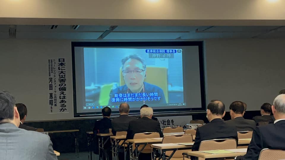 フォーラムでは、全日本病院協会副会長である神野正博氏から「能登半島地震の教訓を生かすため」のテーマで動画メッセージが提供され、京都大学名誉教授である河田惠昭氏からは「日本に大災害の備えはあるのか」という講演が行われました。